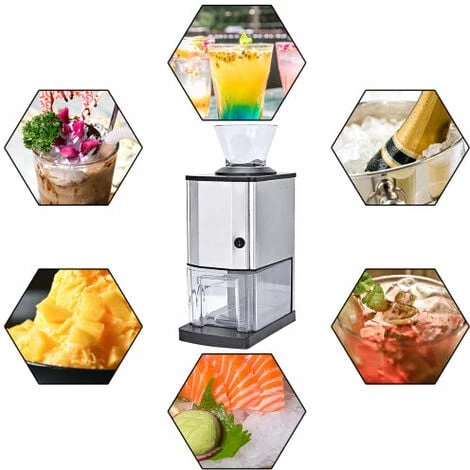 - WIDE APPLICATION: This crushed ice maker will provide crushed ice for your cocktails, drinks, smoothies, seafood platters and more, giving you a cool summer day! In addition, this electric crusher has a wide range of applications and can be used at home, office, bar, restaurant, etc.