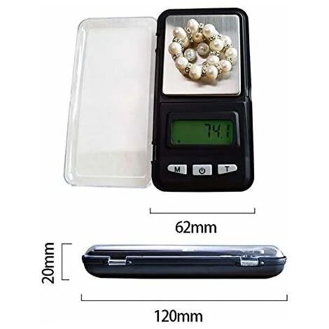 Features: This jewelry scale pocket is a high precision portable digital scale. Count jewelry and rhinestones/precious metals/coins in commercial applications Compact design with fast and accurate measurement with automatic and easy manual calibration. Great job for any of your mailing, jewelry, refill and medicinal products. 500 g to; 0.01 g readability Help you to get the job done much faster Bright 5bit backlit LCD is easy to read, even in poor light conditions Button « Tare » on the screen for reduction to Zero Gem Tray Press for mode button for measurement option: g/oz/ct/dwt/ozt/gn Requires 2 AAA batteries (included) Low power consumption for long lasting use Superb for weighingIncluded: 1 x Pocket Scale