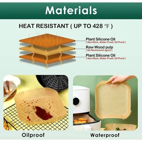 up a breeze, saves time, water and soap. [Your Air Fryer Companion]: Air fryer disposable paper was packed in a waterproof and dustproof transparent plastic box, you can clearly see the remaining amount of air fryer parchment paper liners. And it can be hung, not take up space but conspicuous. [Multiple Use]: Suitable for air fryers, microwave ovens, ovens, steamers, etc. Air fryer paper liners can be used for baking, roasting, frying or holding food, lightweight and practical. [Size]: Firstly, find out capacity of air fryer basket. This parchment paper for air fryer disposable of 8 bottom diameter fits both round and square baskets between 5 and 8 qt. For dual basket air fryer, just put a piece of air fryer paper liner in