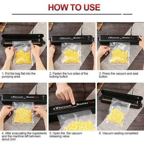 1.Multifunctional Food Vacuum Sealer: The automatic vacuum sealer can maintain the freshness of fruits, nuts, meat, candy and vegetables, and prevent food from being molded and spoiled in the freezer. It reduces spoilage and food waste.