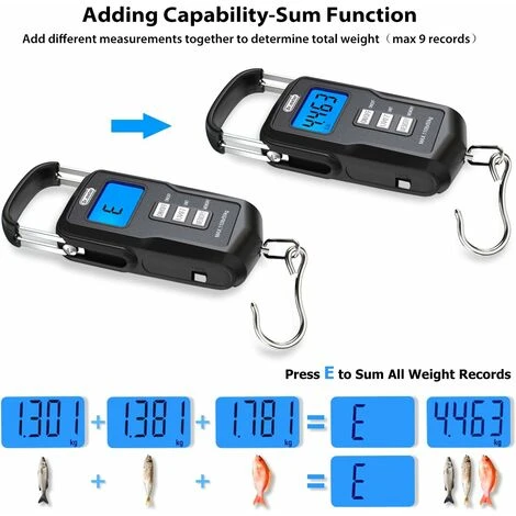 />Cut fishing line / crimping sleeves / wires for crimping; Pinch/Hook Removal Cut Fish Line/Crimping Crimp Ferrules/Wires for Crimping; Crimp / hook removal weight up to 50kg / 110lb / portable scale that can store up to 9 current weights Data Hold / Auto Power Off / built-in tape measure can measure objects in cm / in / ft over a length of 1m Auto store / digital comparison / summation / tare