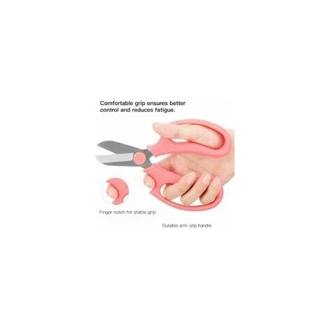 ERGONOMIC HANDLE: The handle adopted non-slip PP material, durable yet soft; The ergonomic handle with groove design, which is portable and lightweight, let you comfortable to grip; The delicate appearance will the shear looks rather functional and stylish.