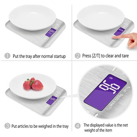3.Tare function: use the tare function to remove the weight of the container from the final measure of your food