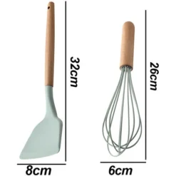 Piece Bpa Free Nonstick Silicone Kitchen Utensil Set, Heat Resistant Silicone With Wooden Handle