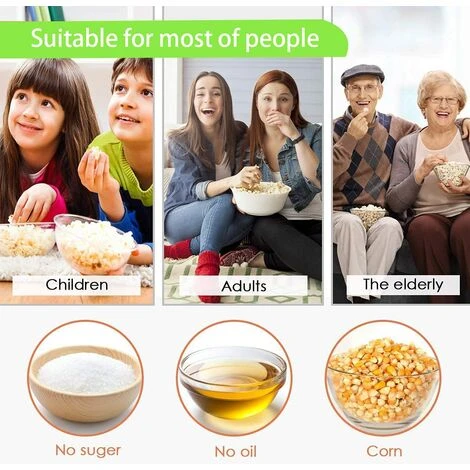 【Very efficient operation】 Popcorn has a high power of 1200W. You can use the machine directly without Start preheating. The popcorn machine is equipped with an internal turbine that heats the kernels quickly and evenly. The delicious popcorn is ready in 3 minutes. The popcorn does not have to be poured automatically. Ideal for use in home cinema. at home, parties and popcorn gatherings will not tear apart.