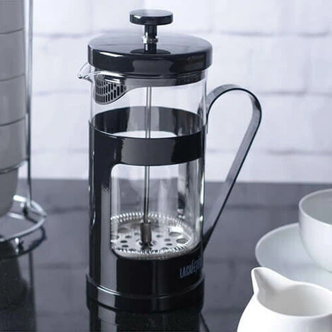 The sleek frame has a glossy finish and a heat resistant borosilicate glass jug for clearly viewing the fresh coffee.