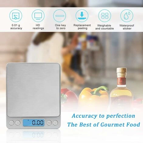 The digital scale is made with high precision sensors to provide you with an accurate weight of 3000g / 0.1g, it is ideal for home, kitchen, office, post office, pharmacy, cafe, bakery, etc. . The error range is ? 0.03g.