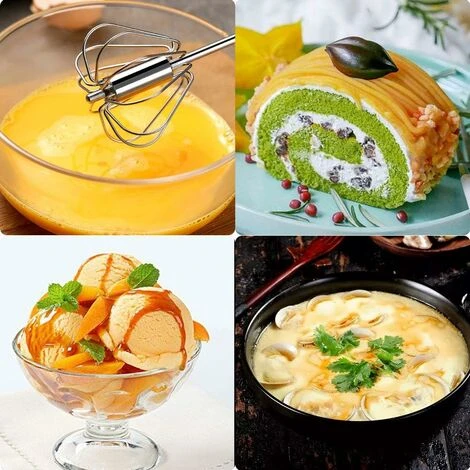 1.【Quiet mixing and easy operation】 The whisk does not have to be plugged in, it rotates automatically under pressure and the handle has a built-in torsion spring that can generate electricity when pressed lightly. It’s quiet, fast and time-saving, noiseless and enjoys a moment of baking.