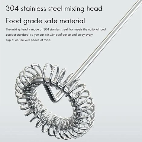 Our milk frother is made of food grade stainless steel spiral whisk AAA size, will not rust or break over time.