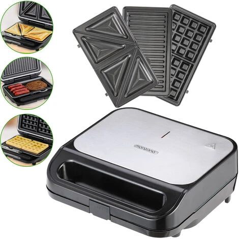 With the XXL sandwich maker MZ7030 from the monzana® brand, you can effortlessly make delicious sandwiches at home. Decide for yourself whether you want to use the device as a sandwich maker, contact grill or waffle iron.