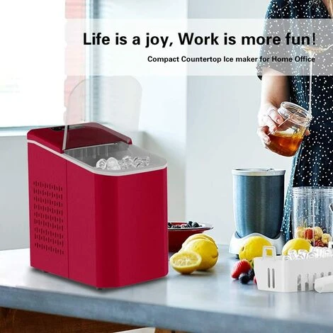 NICEME Electric Automatic Ice Maker Countertop 26 Pounds Portable Electric Ice Maker Machine with Ice Scoop and Basket Dining Room Kitchen Red :