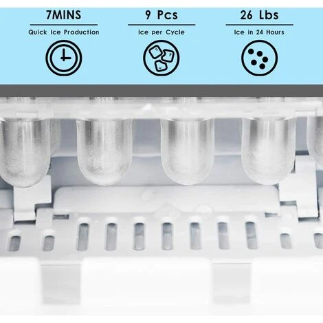 - 【Large Capacity Portable ice Maker】: keep the water tank filled and this unit will produce 26 pounds of ice in a 24 hour period enough to keep drinks cold all day long.
