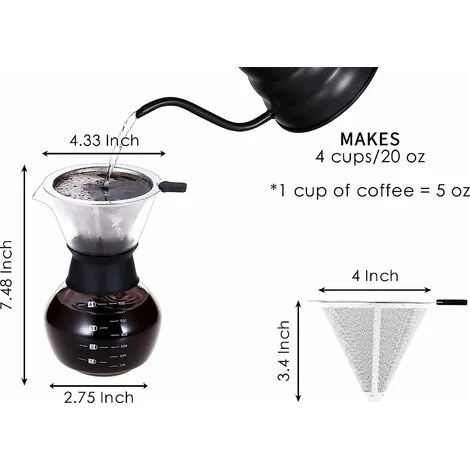 EASY-TO-USE POUR OVER SET: To brew the perfect cup of delicious coffee, simply heat the pour over coffee filter with hot water and add your favorite coffee grounds. Then, using your 20 oz Black Pour Over Coffee Kettle, slowly pour in the hot water at the perfect temperature to regulate the flow of water with coffee grounds