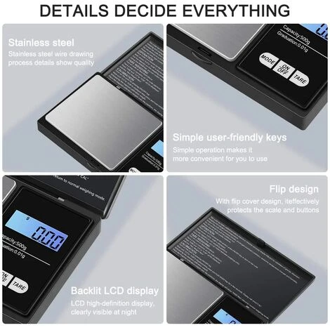 【High Accuracy】 Super high precision sensor can be used to achieve accurate weighing from 0.01g to 500g . It is ideal for precious objects that require high weighing accuracy. Ideal for Small Objects, for weighing small precious objects such as gold, silver, coins, jewellery, precious stones, collectibles, dietary products, kitchen products and spices</ p>