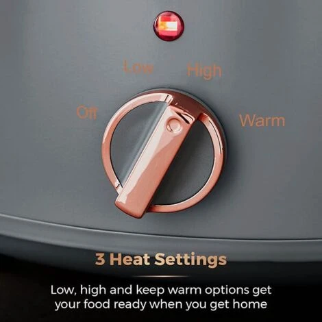 This elegant slow cooker is styled with a grey and rose gold finish which fits perfectly suits and contemporary or modern kitchen. Complete with a 1 year manufacturer’s guarantee.
