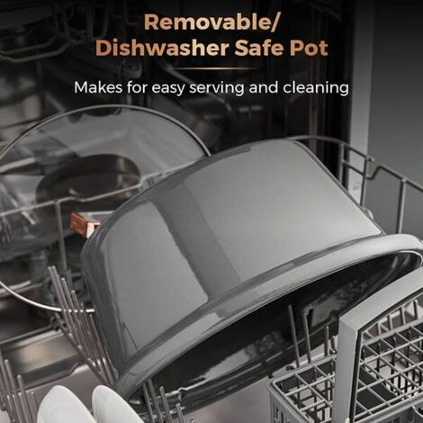 The cooking pot is easily removable for cleaning in the dishwasher for convenience. The handles of the slow cooker are made from a cool touch material for easily serving straight to the table.