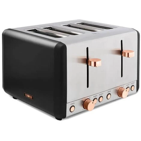 The Tower Cavaletto black 4 slice stainless steel toaster has a contemporary matt black finish with elegant rose gold accents adding style to your kitchen and fits in with the coordinating Cavaletto range (sold seperately).