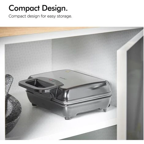 Designed with style and practicality in mind, the waffle maker’s contemporary looks and compact size would be a great addition to any kitchen worktop. Plus, the power cord wraps neatly around the body of the machine to save space, making storage easy.