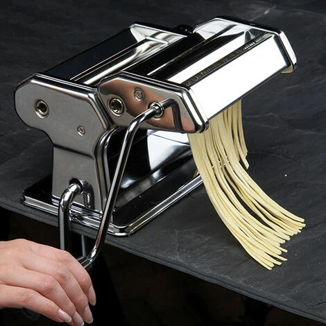 The robust machine with new roller and detachable handle functions to make it even easier to use, features fully adjustable rollers for kneading and rolling pasta in up to nine thicknesses and a table / worktop clamp to hold the machine securely in place when in use.